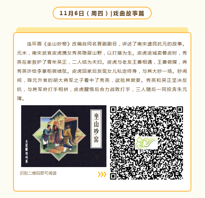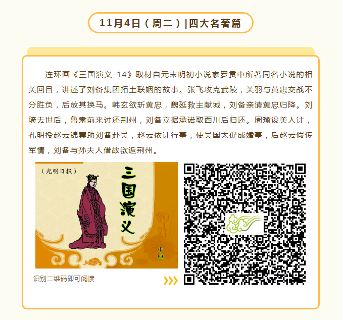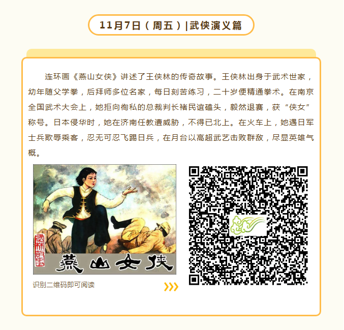 小人书七天“悦”读(11.3-11.9) 连环画,描绘经典形象,讲述经典故事,图文并茂、生动形象。小人书七天“悦”读推荐为读者朋友们带来中华历史、四大名著、古典诗词、戏曲故事、武侠演义、科学科幻、探案传奇7大主题的丰富内容,快来跟着小编阅读本周的故事吧!